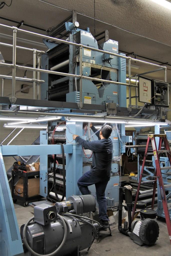 o Quad Tech motorized register with touchscreen control at console Slot style plate cylinders & Reel rod blankets
